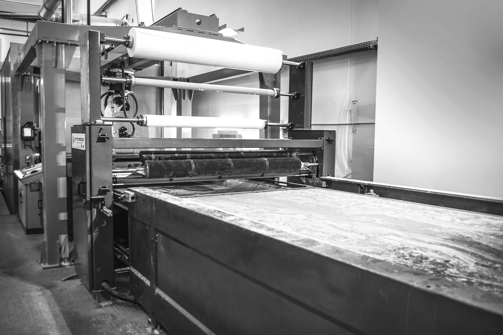 Due rulli, uno dei quali motorizzato, sono preposti al dipanamento della stessa. Un terzo rullo folle la pressa invece sulla lastra tramite sistema pneumatico.