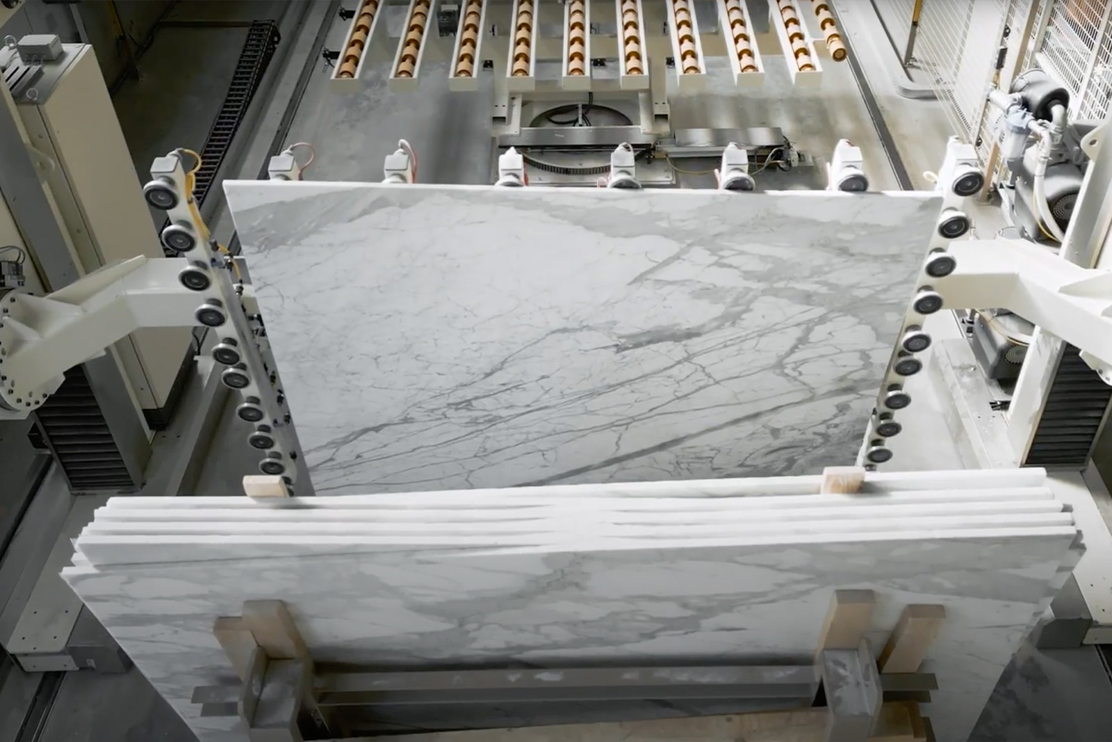 SPIDER is a loading/unloading robot designed to handle stone slabs (marble, granite, or stone material). It can realize the “book match” process, reassembling them as they where before loading, without using rotating roller conveyor.