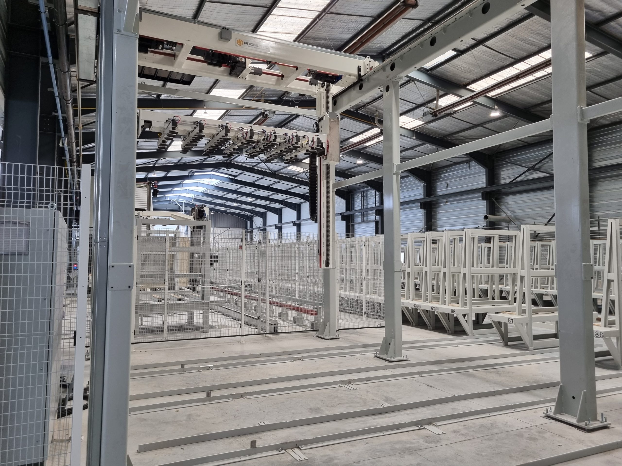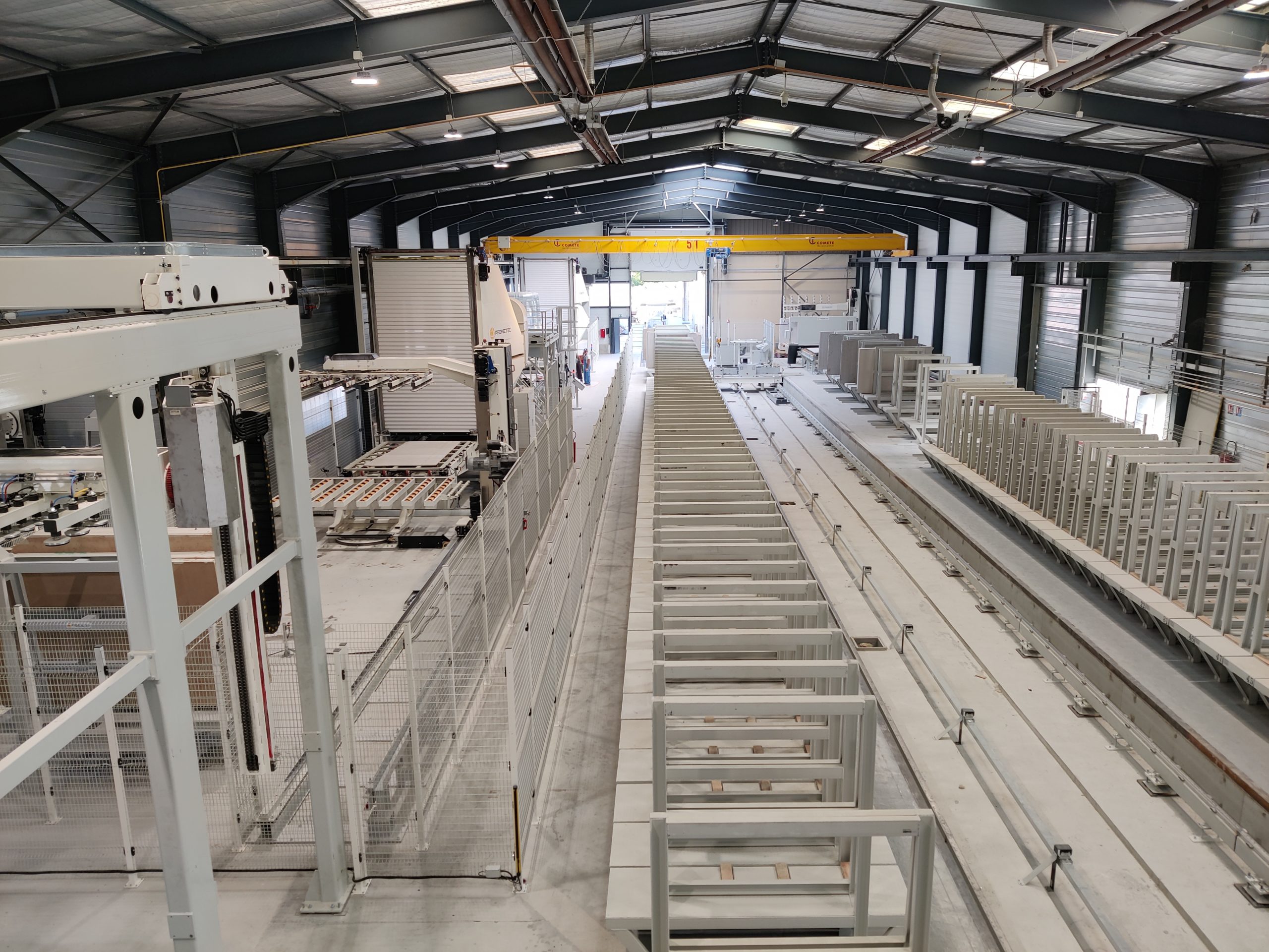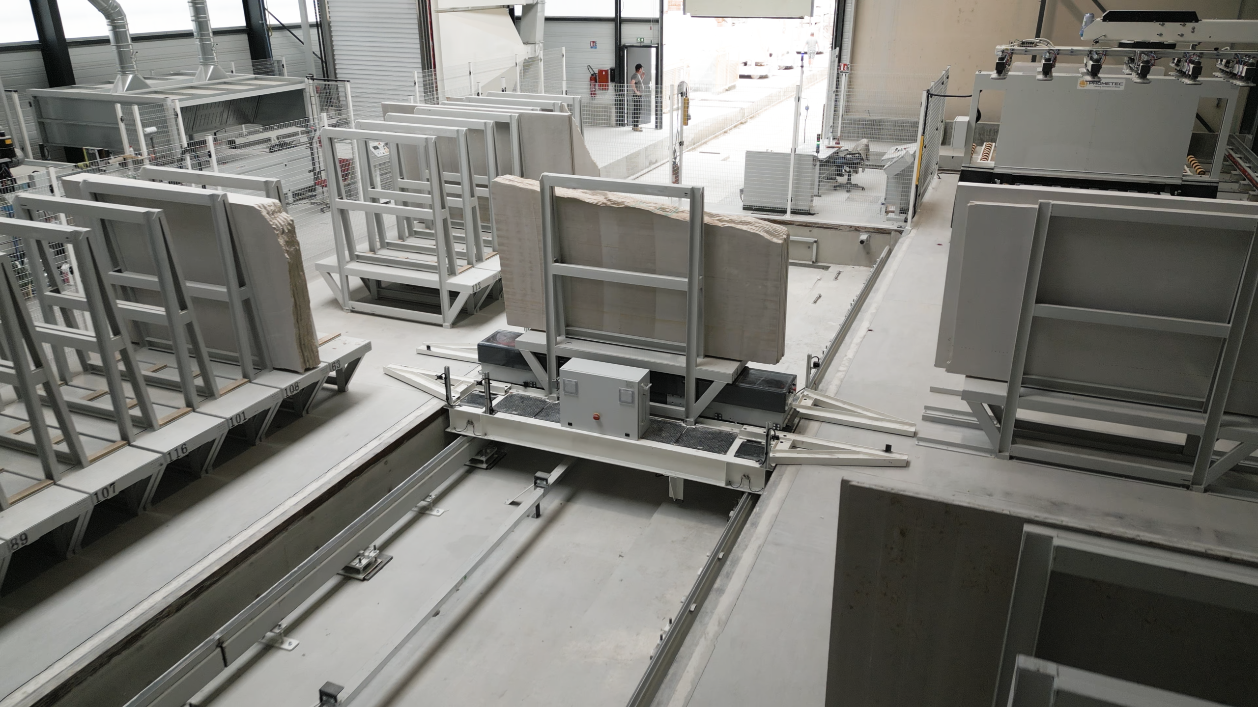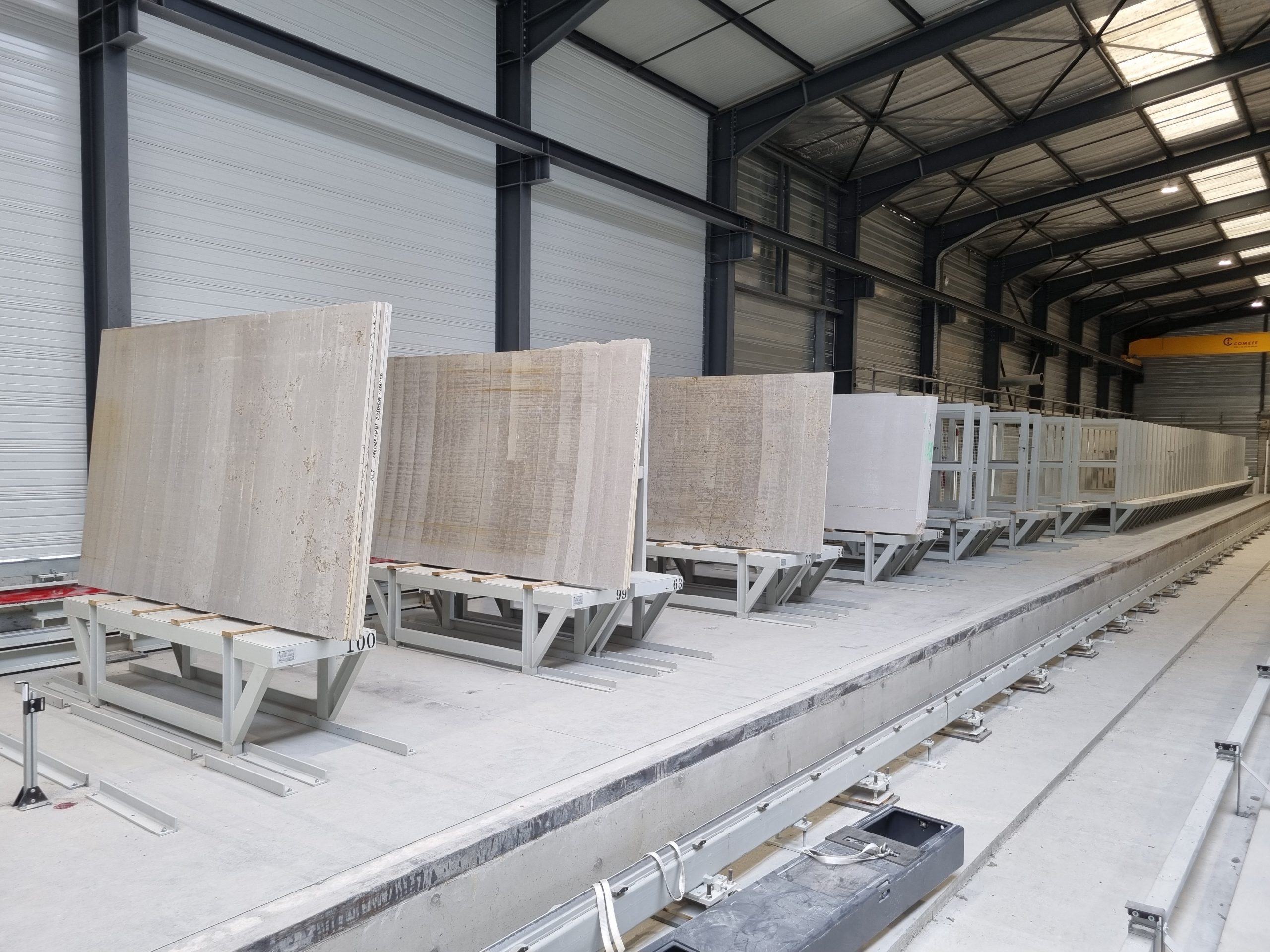 Il risultato è un magazzino che non si limita a immagazzinare, ma entra nel cuore del processo produttivo, come nel caso del sistema implementato per Guinet Derriaz (Francia): un’infrastruttura che consente la classificazione fisica e digitale delle lastre per spessore, formato, colore e tipologia, supportando la programmazione della produzione e garantendo ordine, velocità e continuità al flusso di lavoro.