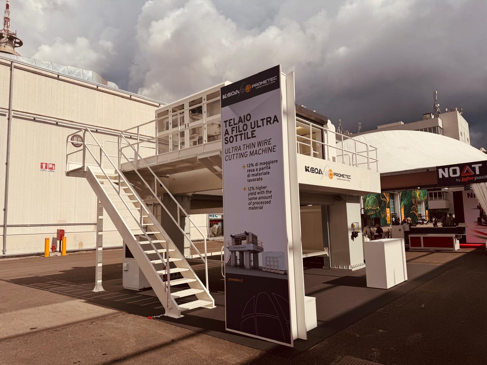 - Riduzione degli scarti: il sistema a micro filo diamantato riduce i fanghi di lavorazione di 4-5 volte rispetto ai telai tradizionali.